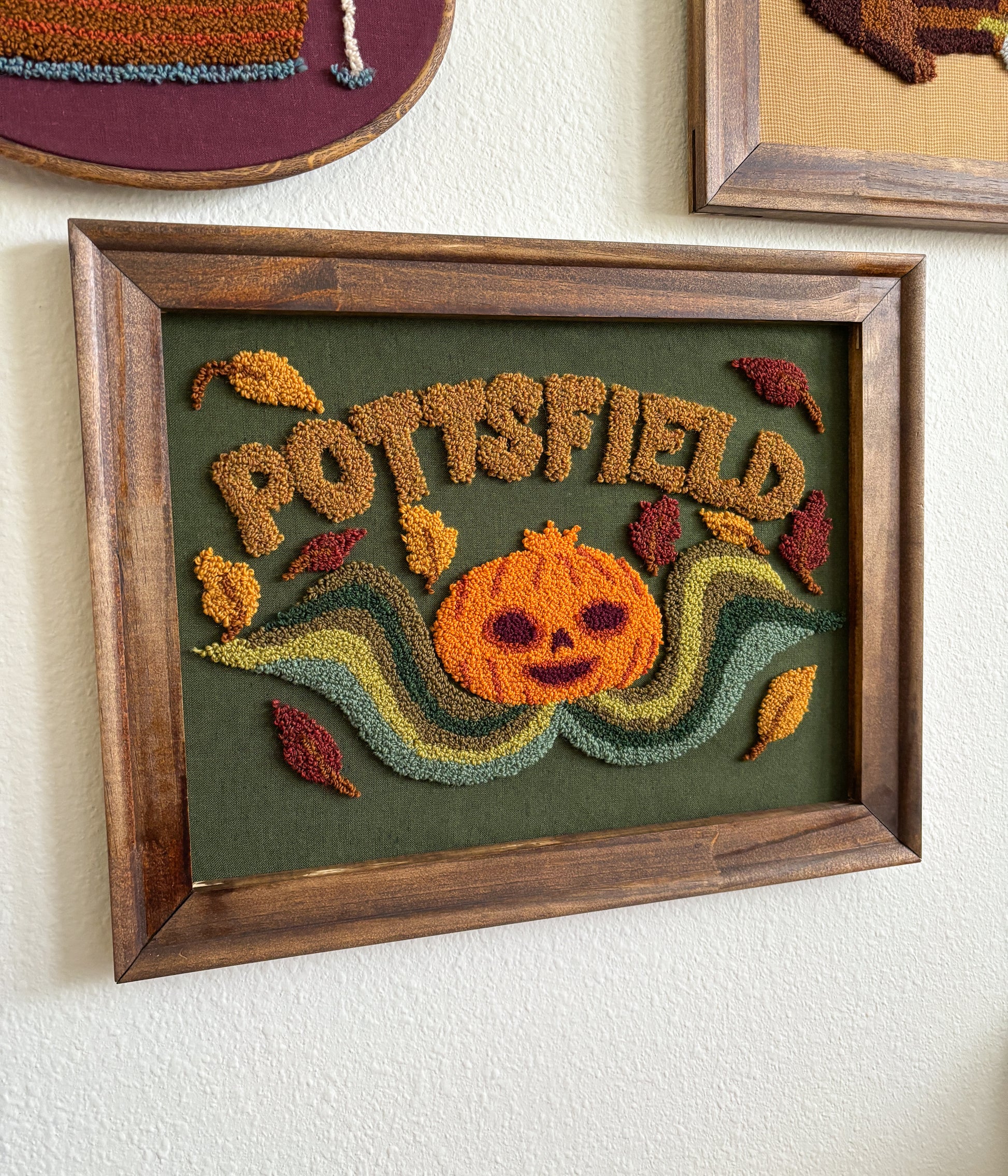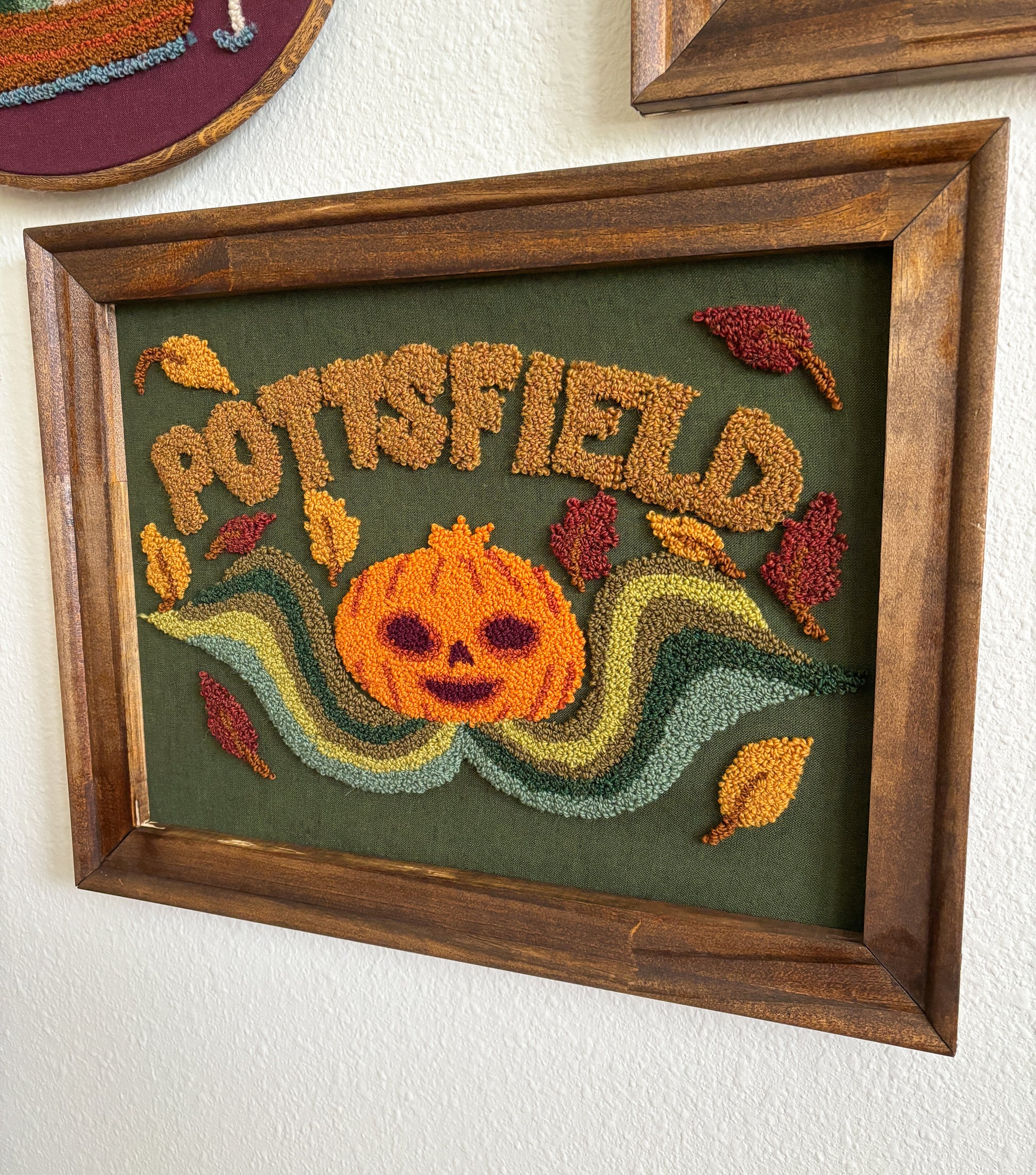 Wood Frame, wool yarn, linen fabric.